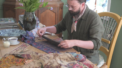 Tapis Noirs silketørklæder danner tilsammen en collage af omformulerede historiske tekstiler og nye originalprint. Mønstre fra på tværs af kontinenter og århundreder genfortolkes dristigt med en moderne tilgang til farver og referencer, alt sammen udført i silke twill og crepe de chine af højeste kvalitet med håndsyede sting.
