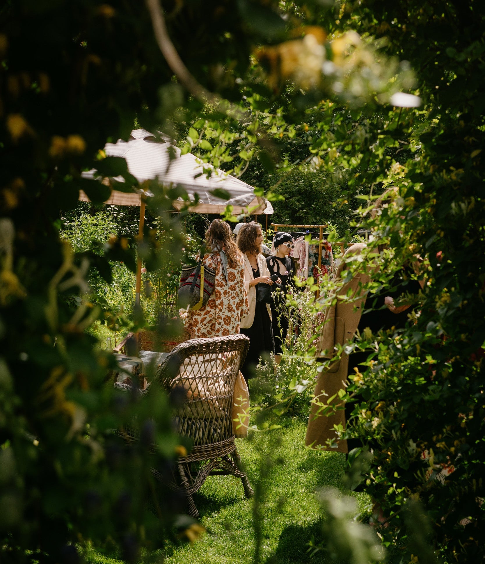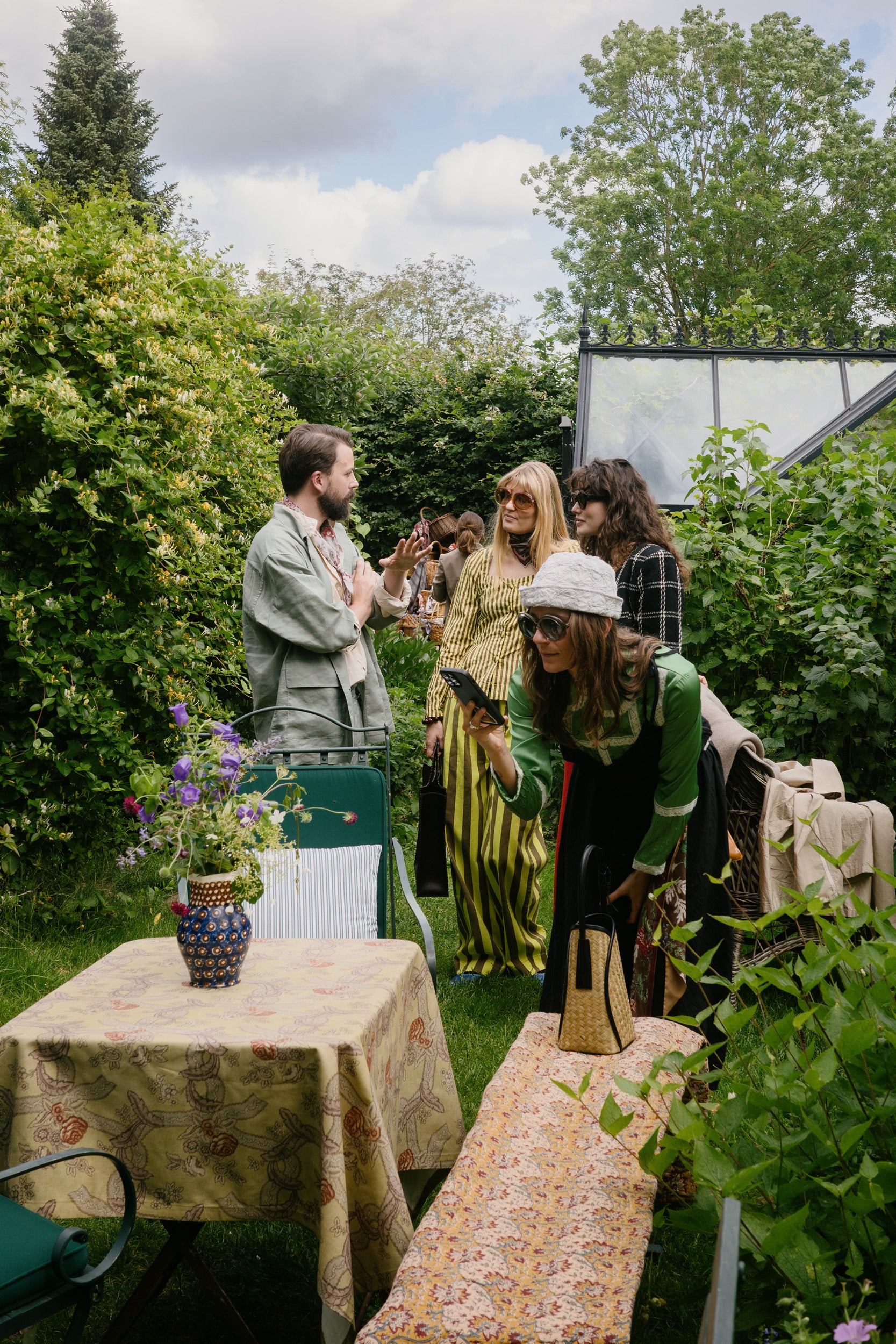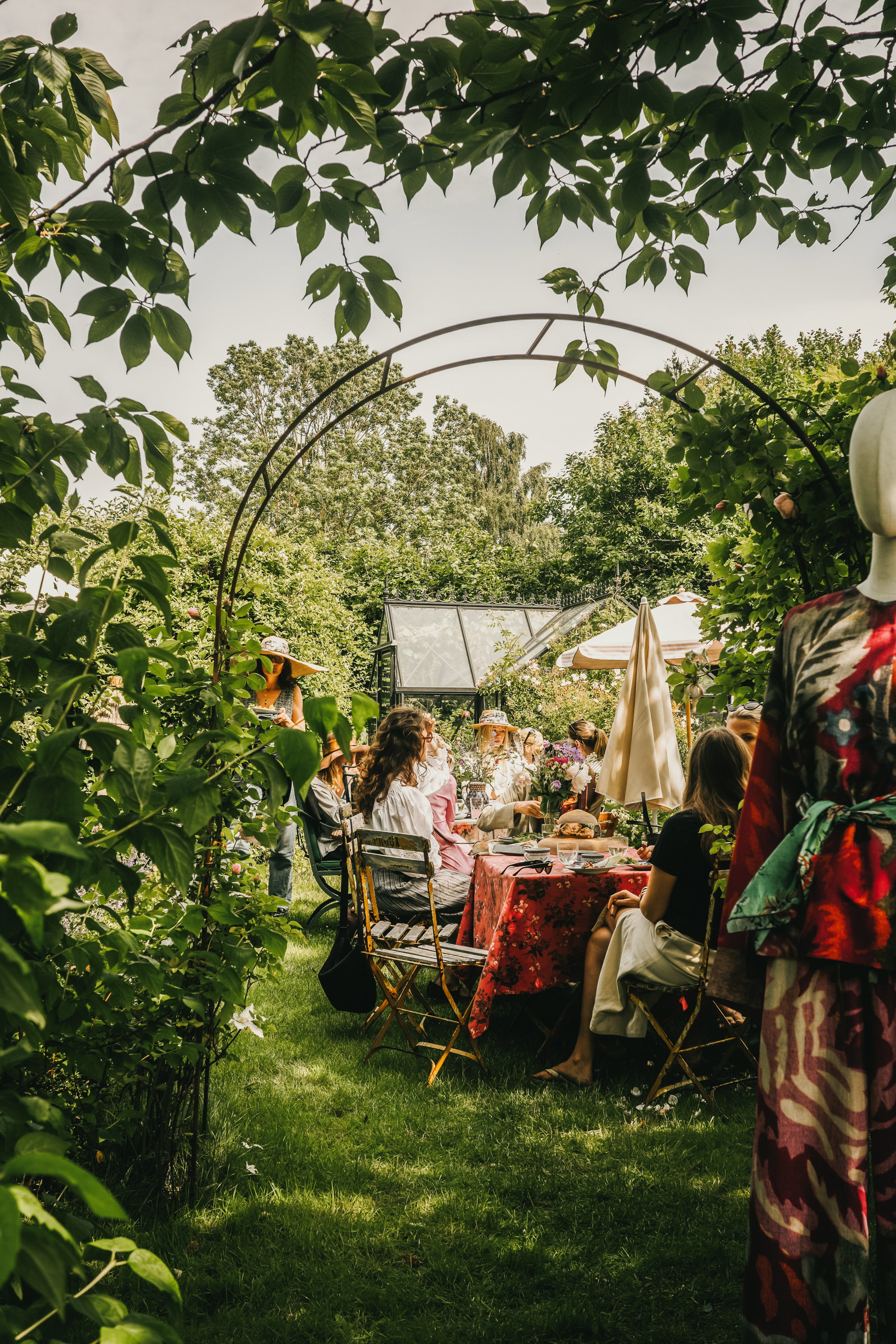I den grønne kulisse af Mads Lehn Kruses have udfoldede Tapis Noir sin Spring/Summer 2025-kollektion som en sanselig hyldest til sommerens lethed. Mellem blomstrende stauder og skyggefulde træer stod silhuetterne i florlette stoffer og mønstre, der dristigt forbandt historiske tekstiler med nutidens farvepoesi. Lyset dansede over silkens glans, mens gæsterne—fra både dansk og international presse—blev budt til et elegant “garden high tea” med kager, friske bær og klassiske sommerdelikatesser. En eftermiddag, hvor håndværk og naturens frodighed flettede sig ind i hinanden i et stille, tidløst øjeblik.