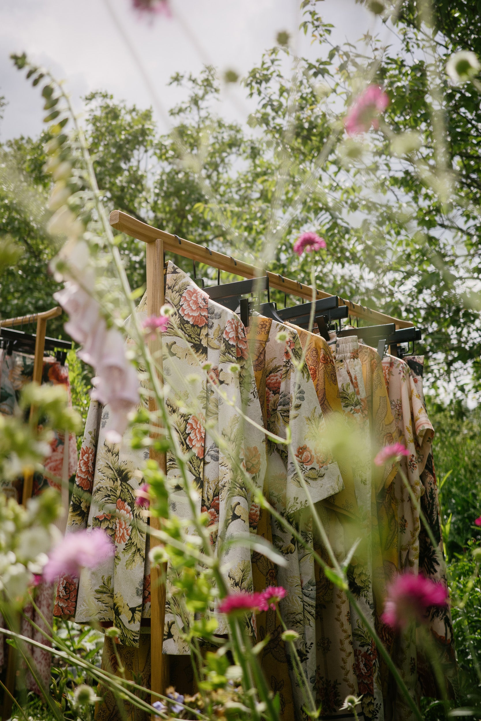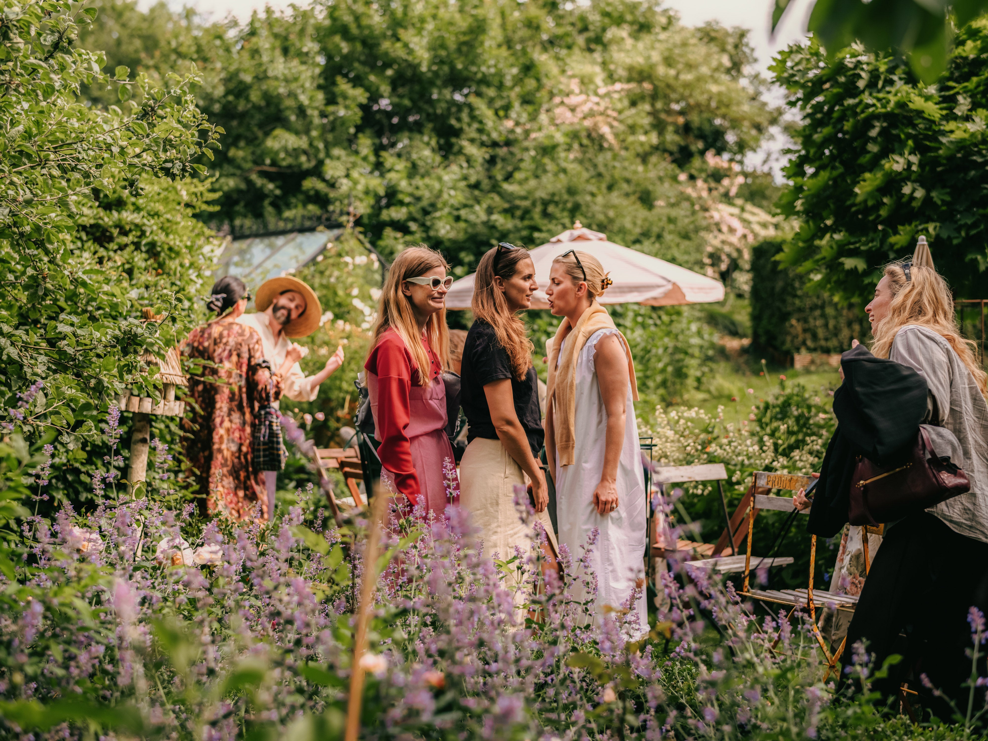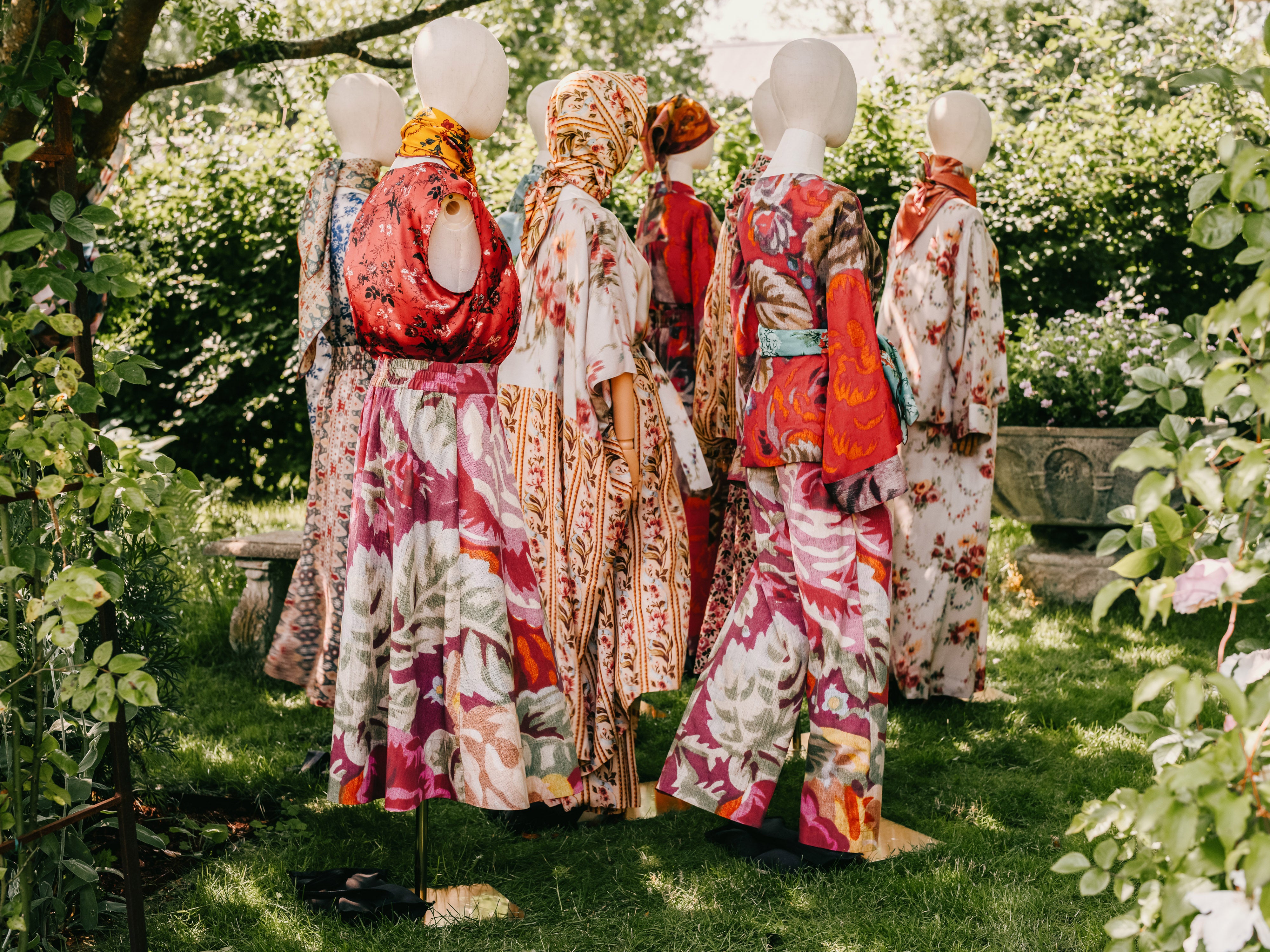 I den grønne kulisse af Mads Lehn Kruses have udfoldede Tapis Noir sin Spring/Summer 2025-kollektion som en sanselig hyldest til sommerens lethed. Mellem blomstrende stauder og skyggefulde træer stod silhuetterne i florlette stoffer og mønstre, der dristigt forbandt historiske tekstiler med nutidens farvepoesi. Lyset dansede over silkens glans, mens gæsterne—fra både dansk og international presse—blev budt til et elegant “garden high tea” med kager, friske bær og klassiske sommerdelikatesser. En eftermiddag, hvor håndværk og naturens frodighed flettede sig ind i hinanden i et stille, tidløst øjeblik.